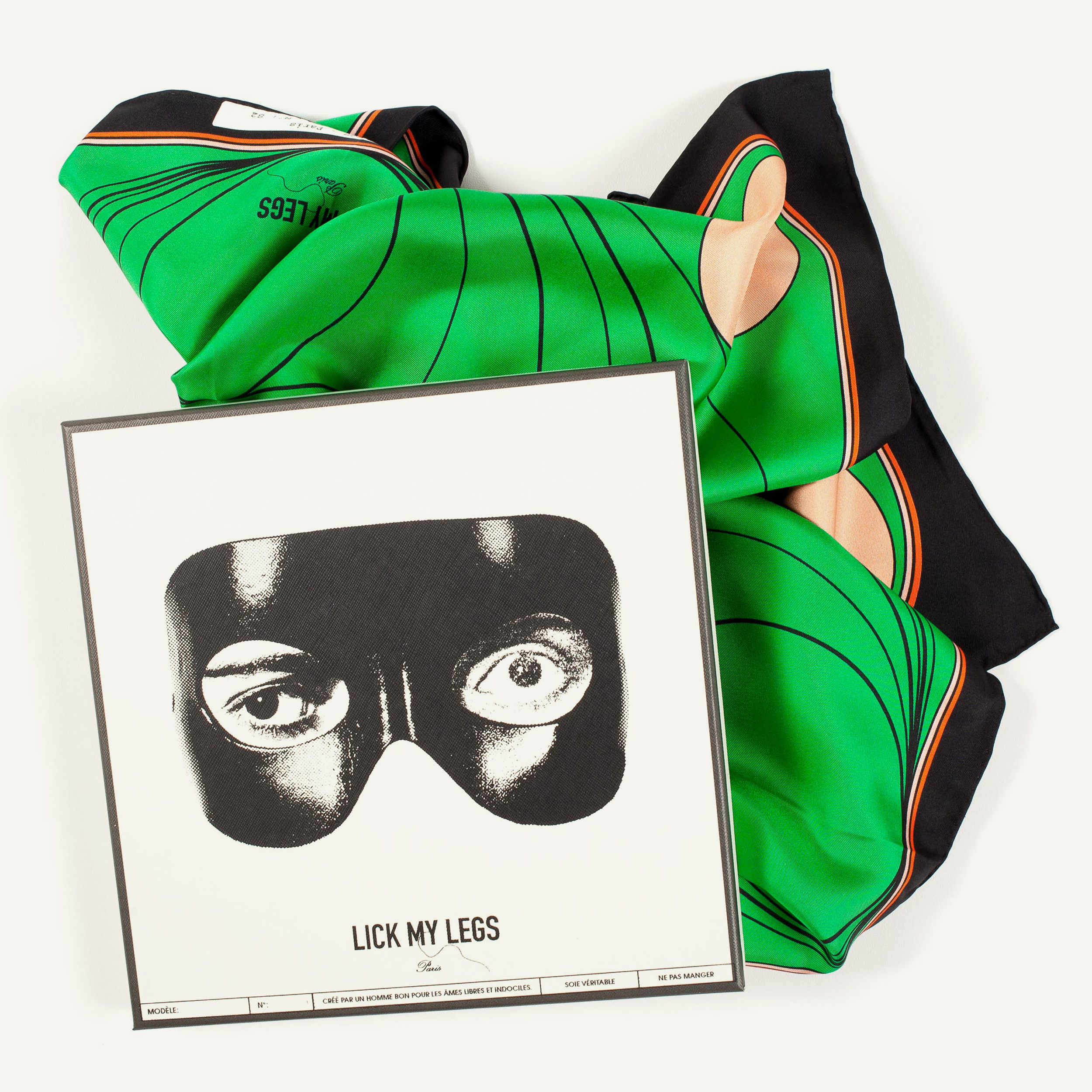 carré en twill de soie 90cm, 19 mommes. Numéroté. Boite sérigraphiée. Lick my legs